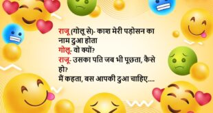 पति- क्या तुम जानती हो दुनिया में सबसे ज्यादा शरीफ कौन है? पत्नी- दुनिया में सिर्फ वही लोग शरीफ हैं, जिनके मोबाइल में पासवर्ड नहीं है……😆🤣🤣🤣🤣😝😝😝 ************************************************************************************ पड़ोसन- बहन, नया हार तो बहुत अच्छा है कितने का पड़ा? दूसरी महिला- ज्यादा नहीं, दो दिन की लड़ाई, एक दिन की भूख हड़ताल, 2 दिन का मौन व्रत और बस थोड़ा रोना …