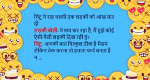 प्रेमिका- जानू तुम हफ्ते में कितनी बार दाढ़ी बनाते हो? प्रेमी – दिन में 20-30 बार! प्रेमिका- पागल हो एक दिन में 20-30 बार कौन दाढ़ी बनाता है? प्रेमी- अरे मैं नाई हूं!😆🤣🤣🤣🤣😝😝😝 ************************************************************************************ नौकरानी- मालकिन, मुझे 10 दिन की छुट्टी चाहिए मालकिन- अगर तू छुट्टी पर चली गई, तो फिर तेरे साहब का नाश्ता कौन बनाएगा? टिफिन कौन पैक …