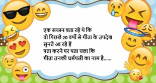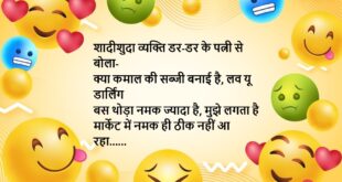 देवर शराब पीकर घर आया और भाभी के सामने रोने लगा भाभी- रो क्यों रहे हो देवर जी? देवर- जिस लड़की को भूलने के लिए पी रहा था, उसका नाम ही याद नहीं आ रहा……😆🤣🤣🤣🤣😝😝😝 ************************************************************************************* दामाद- आपकी बेटी में तो हजारों कमियां हैं, सास- हां दामाद जी, इसी वजह से तो उसे अच्छा लड़का नहीं मिला…..😆🤣🤣🤣🤣😝😝😝 ************************************************************************************* शादीशुदा व्यक्ति …