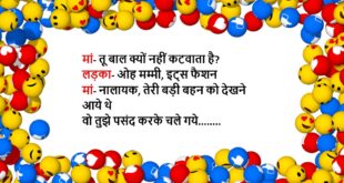 सास (बहू से)- शर्म नहीं आती तुम्हे, सुबह इतनी देर से उठती हो सूरज भी कब का निकल आया है बहू- चिल मांजी चिल, वो सोता भी तो मुझसे पहले है….😆🤣🤣🤣🤣😝😝😝 ************************************************************************************* सास (बहू से)- तुम्हें खाना बनाना नहीं आता? बहू- नहीं मम्मी जी सास- तो शादी से पहले क्यों नहीं बताया? बहू- सरप्राइज……😆🤣🤣🤣🤣😝😝😝 ************************************************************************************* एक बार चिंटू डॉक्टर के …