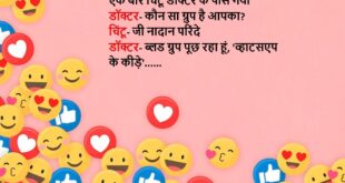 बॉयफ्रेंड को गर्लफ्रेंड की बनाई पनीर की सब्जी में पनीर ढूंढने से भी नहीं मिल रहा था बॉयफ्रेंड ने हिम्मत करके पूछा तो गर्लफ्रेंड बोली- चुपचाप खा लो, सब्जी का नाम ही ‘खोया पनीर’ है…😆🤣🤣🤣🤣😝😝😝 ************************************************************************************* मरीज- डॉक्टर साहब, क्या आपको यकीन है कि मुझे मलेरिया ही है? दरअसल मैंने एक मरीज के बारे में पढ़ा था कि डॉक्टर उसका …