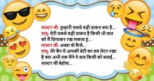 गप्पू- तू ये क्या देख रहा है? पप्पू- ये मेरी गर्लफ्रेंड का लवलेटर है गप्पू- लेकिन ये तो खाली है पप्पू- हां, आजकल हमारी बातचीत बंद है……😆🤣🤣🤣🤣😝😝😝 ************************************************************************************* पप्पू- चल घूमने चलते हैं, चल रहा है क्या? गप्पू- कहां चले? पप्पू- कब्रिस्तान चलते हैं गप्पू- पागल है क्या, वो भी कोई घूमने की जगह है क्या? पप्पू- लोग वहां जाने …