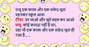 रमेश (मम्मी से)- मेरी मैडम पता नहीं अपने आप को क्या समझती हैं मम्मी- ऐसा भी क्या हो गया? रमेश- मैडम ने खुद ब्लैकबोर्ड पर लिखा ‘महाभारत’ और मुझसे पूछने लगी की महाभारत किसने लिखा है? तो मैंने भी कह दिया की आपने ही तो लिखा है उतने में मैडम ने मुझे बहुत कूटा……😆🤣🤣🤣🤣😝😝😝 ************************************************************************************* पप्पू एक काला और एक …