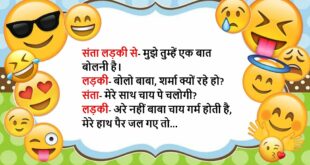 संता- मैं जो भी काम शुरू करता हूं, मेरी बीवी बीच में आ जाती है। बंता- तू ट्रक चला कर देख भाई, शायद किस्मत साथ दे। (संता ने ट्रक खरीद लिया है)😆🤣🤣🤣🤣😝😝😝 ************************************************************************************** संता गर्लफ्रेंड को डेट पर लेकर गया, डिनर के बाद संता- मैं कुछ कहना चाहता हूं, तुम नाराज तो नहीं होगी? गर्लफ्रेंड (शरमाते हुए)- नहीं, बोलो ना। …