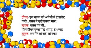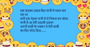 मिंटू (चिंटू से)- कोई लड़की आपके प्यार को ठुकराए तो कहीं ऊंचा टावर देखो और उस पर चढ़ जाओ चिंटू- और फिर मिंटू- सोचो शहर बहुत बड़ा है दूसरी कोई मिल जाएगी……😆🤣🤣🤣🤣😝😝😝 ************************************************************************************* पप्पू- अगर बचपन में मैंने मां की बात सुन ली होती तो आज जिंदगी में बहुत काम आता और मुझे ये सब दिन नहीं देखने पड़ते गप्पू- …