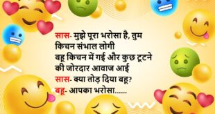देवर- भाभी आप दुबारा शादी कर लो भाभी- क्यों? देवर- क्योंकि आपकी शादी की फोटोस पर बेहद कम लाइक आए हैं भाभी बेहोश……😆🤣🤣🤣🤣😝😝😝 ******************************************************************************************** पप्पू- यार कल शाम को भाभी तुझे इतना क्यों मार रही थी? गप्पू- क्या बताऊं सरकारी नौकरी करते करते मेरा भी दिमाग खराब हो गया है पप्पू- लेकिन हुआ क्या? गप्पू- कल गर्लफ्रेंड को लेटर लिखा …