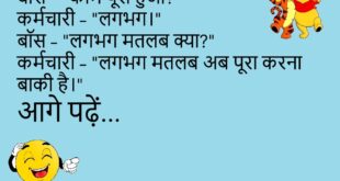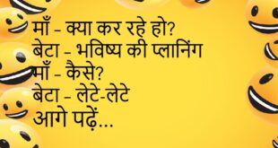 मम्मी – “इतना मिठाई क्यों खाया?”बच्चा – “आज तो खास दिन है।”मम्मी – “कौन सा खास दिन?”बच्चा – “मेरा मीठा दिन!”😊😊😊😊 **************************************** टीचर – “इतना देर से क्यों आया?”छात्र – “ट्रेन लेट थी।”टीचर – “तो ट्रेन के बहाने बनाना छोड़ो!”😊😊😊😊 **************************************** बॉस – “काम जल्दी क्यों नहीं हुआ?”कर्मचारी – “सॉरी, टाइम निकल गया।”बॉस – “काम भी टाइम के साथ निकलना …