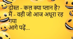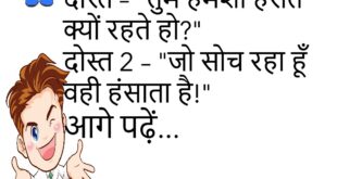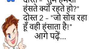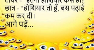टीचर – “इतना होशियार क्यों हो?”छात्र – “होशियार तो हूं, बस पढ़ाई छोड़ दी।”😊😊😊😊 **************************************** मम्मी – “इतना मिठाई क्यों खाया?”बच्चा – “आज तो खास दिन है।”मम्मी – “कौन सा खास दिन?”बच्चा – “मेरा मीठा दिन!”😊😊😊😊 **************************************** पप्पू – “तुम इतने शांत क्यों हो?”गुड्डू – “कल की लड़ाई याद नहीं रखना आसान है।”😊😊😊😊 **************************************** दोस्त – “तुम हमेशा हंसते क्यों …
