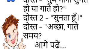 टीचर – “इतना देर से क्यों आया?”छात्र – “ट्रेन लेट थी।”टीचर – “तो ट्रेन के बहाने बनाना छोड़ो!”😊😊😊😊 **************************************** मम्मी – “कितना खाना खा लिया!”बच्चा – “थोड़ा ही खाया।”मम्मी – “थोड़ा? पापा का हिस्सा भी खा लिया!”😊😊😊😊 **************************************** दोस्त – “तुम गाना सुनते हो या गाते हो?”दोस्त 2 – “सुनता हूँ।”दोस्त – “अच्छा, गाते समय?”😊😊😊😊 **************************************** पति – “आज कुछ …