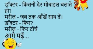 पत्नी – आप मुझसे कुछ छुपा रहे हो? पति – हाँ। पत्नी – क्या? पति – चैन 😜 ******************************************* डॉक्टर – नींद पूरी लेते हो? मरीज़ – जी, वीकेंड में 😆 ******************************************* दोस्त – टाइम मैनेजमेंट कैसा है? मैं – टाइम मुझे मैनेज करता है 😄 ******************************************* टीचर – सवाल समझ आया? छात्र – जी। टीचर – जवाब? छात्र – …