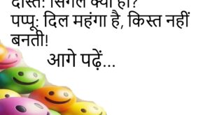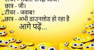 दोस्त – आज बहुत खुश लग रहे हो। मैं – आज इंटरनेट फास्ट है। दोस्त – सही है, छोटी खुशियाँ 😄 ******************************************* पत्नी – आप मुझसे प्यार करते हो? पति – हाँ। पत्नी – कितना? पति – जितना सवाल कम हों 😜 ******************************************* टीचर – पढ़ाई क्यों नहीं करते? छात्र – सर, ज्ञान अंदर है। टीचर – बाहर क्यों नहीं …