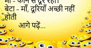 पत्नी – मेरी बात ध्यान से सुनो। पति – सुन रहा हूँ। पत्नी – समझ में आ रही है? पति – वो रिस्क नहीं ले सकता 😆 ******************************************* दोस्त – इतना फोन क्यों चलाते हो? मैं – उंगलियों की एक्सरसाइज 😄 ******************************************* बॉस – कल छुट्टी क्यों ली? कर्मचारी – सर, शरीर ऑफिस नहीं आ पाया 😜 ******************************************* माँ – …