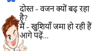 पत्नी- ठंड बहुत पड़ रही है पति- जिंदा रहने के लिए अपनी पत्नी से बात करते रहना चाहिए पत्नी- ऐसा क्यों? पति- क्योंकि वो ऐसा जरूर कुछ बोलेगी की आपके तन-बदन में आग लग जाएगी और आप ठंड से बचे रहेंगे पति का जवाब सुनकर पत्नी की बोलती बंद हो गई…..😆🤣🤣🤣🤣😝😝😝 ************************************************************************************ एक लड़की कोक पी रही थी, उसमें एक …