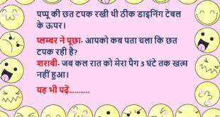 बच्चे को स्कूल छोड़ने गए पिता को उसकी नर्सरी की टीचर मिल गई पिता- पहचाना? टीचर- हां, आप शायद मेरे किसी बच्चे के पापा हैं पिता मुस्कुराया और टीचर शरमा गई……😆🤣🤣🤣🤣😝😝😝 ************************************************************************************ दामाद- आपकी बेटी में कोई बात ढंग की नहीं है सास- हां दामाद जी मालूम है, तभी तो उसे कोई ढंग का लड़का नहीं मिला…..😆🤣🤣🤣🤣😝😝😝 ************************************************************************************ ससुर (दामाद …