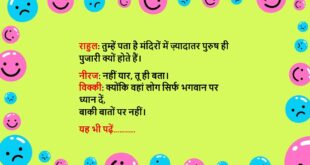 मॉल में बिस्कुट चोरी करते हुए एक खूबसूरत महिला पकड़ी गई और फिर… जज- तुमने बिस्कुट का एक पैकेट चुराया, जिसमें 30 बिस्कुट थे, इसके लिए तुम्हें 30 दिनों की सजा सुनाई जाती है महिला का पति बोला- जज साहब, सूजी का पैकेट भी चुराया है। जज बेहोश…कितनी सजा दें।😆🤣🤣🤣🤣😝😝😝 ************************************************************************************ गर्लफ्रेंड- तुमने ऐसा क्या देख लिया कि मुझसे रिश्ता …