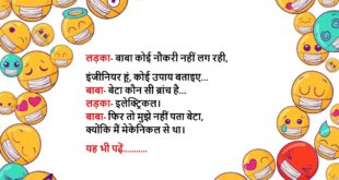 पिता- बेटी अब तुम बड़ी हो गई हो, तुम्हारी शादी कर देते हैं बेटी- जी पापा पिता- बताओ तुम्हें कैसा लड़का चाहिए? बेटी (शरमाते हुए)- पिंक कलर का…..😆🤣🤣🤣🤣😝😝😝 ************************************************************************************ लड़की (लड़के से)- आज मुझे पापा ने नया मोबाइल लेकर दिया लड़का- अच्छा कौन-सा मोबाइल है? लड़की- श्यामसिंह का लड़का पहले तो चकराया कि ये मार्केट में कौनसा नया मोबाइल आया …