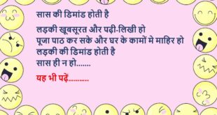 दामाद 14 दिनों से ससुराल में था सास- दामाद जी, कब वापस जा रहे हो? दामाद- क्यों? सास- बहुत दिन हो गए दामाद- आपकी बेटी भी तो दस-दस महीने मेरे यहां रहती है मैंने तो जाने को नहीं बोला सास- दामाद जी, वो तो आपके यहां ब्याही गई है न दामाद-और मैं क्या यहां अपहरण करके लाया गया हूं?😆🤣🤣🤣🤣😝😝😝 ************************************************************************************ …