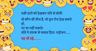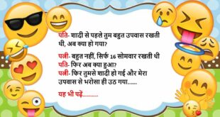 पत्नी- मैं तुम्हारी नीली शर्ट प्रेस कर रही थी, तो शर्ट एक जगह थोड़ी सी जल गई पति- कोई बात नहीं, मेरे पास वैसी ही एक और नीली शर्ट है पत्नी- मुझे मालूम था, इसलिए उस शर्ट का उतना कपड़ा काटकर, मैने इस जली हुई शर्ट में जोड़ दिया इतना सुनकर पति बेहोश……😆🤣🤣🤣🤣😝😝😝 ************************************************************************************ पहला दोस्त- भाई मेरी और मेरी …