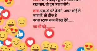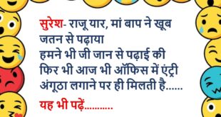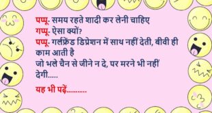 पप्पू- चल घूमने चलते हैं, चल रहा है क्या? गप्पू- कहां चले? पप्पू- कब्रिस्तान चलते हैं गप्पू- पागल है क्या, वो भी कोई घूमने की जगह है क्या? पप्पू- लोग वहां जाने के लिए मर रहे हैं और तू नखरे कर रहा है……..😆🤣🤣🤣🤣😝😝😝 ************************************************************************************ मोहन (सोहन से)- यार पिताजी ने कहा था, किताबें पढ़ा करो प्रेरणा मिलेगी सोहन- फिर क्या …