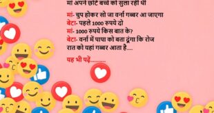 आदमी (नाई से)- तुमने दाढ़ी बनाने के साथ मेरी चमड़ी भी छील दी नाई- चिंता मत कीजिए, मैं आपसे केवल दाढ़ी बनाने के ही पैसे लूंगा…..😆🤣🤣🤣🤣😝😝😝 ************************************************************************************ राजू (सुरेश से)- पता है, जब अमेरिका में लाइट जाती है तो वे पावर ऑफिस में फोन करते हैं जब जापान में लाइट जाती है तो फ्यूज चेक करते हैं और जब अपने …