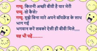पप्पू (गप्पू से)- यार ये शादीशुदा लोग कितना झूठ बोलते हैं गप्पू- वो कैसे? पप्पू- अपनी एनिवर्सरी पर बोलते हैं कि पता ही नहीं चला 20 साल कैसे निकल गये जबकि इनको पता है, हर दिन कैसे निकलता है…..😆🤣🤣🤣🤣😝😝😝 ************************************************************************************ गप्पू (पप्पू से)- जिंदगी में गर्लफ्रेंड का होना बहुत जरुरी है वरना दिल की बातें बेवड़ो से करनी पड़ती हैं……😆🤣🤣🤣🤣😝😝😝 …
