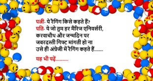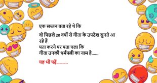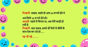 दामाद पहली बार ससुराल गया सास बड़े गिलास में पानी और शाम को छोटे गिलास में दूध लाई ये देखकर दामाद बोला- सुबह वाले गिलास की तबीयत खराब है क्या?😆🤣🤣🤣🤣😝😝😝 ************************************************************************************ पत्नी- ये तुम हर रोज ऊपर हवा में पत्थर क्यों मारते हो? पति- कहते हैं जोड़ियां ऊपर से बनती हैं……😆🤣🤣🤣🤣😝😝😝 ************************************************************************************ पत्नी- ये रैगिंग किसे कहते हैं? पति- ये …
