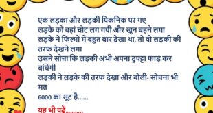 एक लड़का क्लास में बार-बार अपनी नाक पोंछ रहा था टीचर- क्या हुआ? लड़का- जुकाम हुआ है टीचर- शाम को जाकर थोड़ी ब्रांडी पी लेना लड़का (गुस्से में)- उससे चली जाएगी? टीचर- उसके चक्कर में राजे रजवाड़े चले गए तुम्हारी खांसी क्या चीज है……😆🤣🤣🤣🤣😝😝😝 ************************************************************************************ एक लड़का दूसरे लड़के से कहता है- तूने मेरी गर्लफ्रेंड को प्रपोज क्यों किया? लड़के …