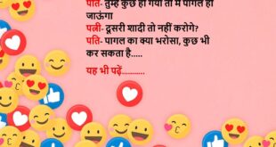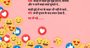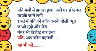पत्नी- देखो, मैं कई वर्षो से इसे पहन रही हूं, फिर भी इसकी फिटिंग वैसी की वैसी है और आप हैं कि मुझे मोटी कहते हैं पति- भगवान से डरो ये शॉल है……😆🤣🤣🤣🤣😝😝😝 ************************************************************************************ एक पति ने अपनी पत्नी को दिल की बात बताई और कहा- तुमसे शादी करके मुझे एक फायदा हुआ है पत्नी- कौन सा फायदा? पति- मुझे …