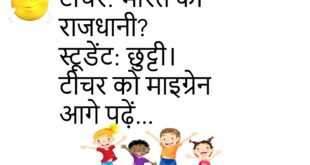 टीचर: सबसे तेज चीज़ क्या है? स्टूडेंट: नींद। टीचर: कैसे? स्टूडेंट: क्लास में आते ही आ जाती है।😊😊😊😊 ************************************** दोस्त: शादी कब करेगा? लड़का: जब पेट खाली होगा। दोस्त: इसका शादी से क्या मतलब? लड़का: खर्चा सोचकर भूख मर जाती है।😊😊😊😊 ************************************** डॉक्टर: कोई टेंशन? मरीज: जी, नेटवर्क नहीं आ रहा। डॉक्टर: ये बीमारी नहीं, देश की समस्या है।😊😊😊😊 ************************************** …