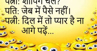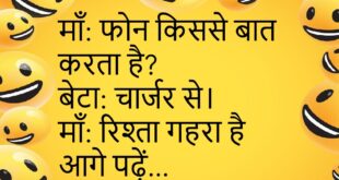 टीचर: मोबाइल क्यों लाए? स्टूडेंट: माता-पिता से बात करनी थी। टीचर: मेरी भी करा दो 😅 ************************************** दोस्त: तू बहुत शांत है। लड़का: अंदर WiFi स्लो है 😜 ************************************** माँ: बाहर मत जाओ। बेटा: इंटरनेट खराब है। माँ: भगवान का शुक्रिया 😆 ************************************** टीचर: सवाल कठिन है? स्टूडेंट: नहीं। टीचर: तो हल क्यों नहीं? स्टूडेंट: आदत नहीं 😅 ************************************** पत्नी: …