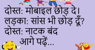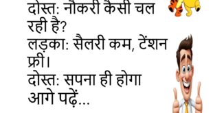 दोस्त: मोबाइल गिर गया। लड़का: स्क्रीन बची? दोस्त: इंसान बचा है 😆 ************************************** माँ: जल्दी सो जाओ। बेटा: इंटरनेट सोने नहीं देता। माँ: राउटर से शादी कर ले 😜 ************************************** टीचर: प्रश्न समझ आया? स्टूडेंट: हाँ। टीचर: जवाब? स्टूडेंट: वो नहीं आया 😅 ************************************** पत्नी: बाहर खाना? पति: घर का बेहतर है। पत्नी: तो बाहर चलो 😆 ************************************** दोस्त: नौकरी …
