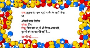 सुरेश एक शादी में गया, जहां जाकर उसकी आंखें नम हो गईं जब उसने एक नई नवेली बहू, मझली बहू और बड़ी बहू को घूंघट में देख कर बोला- वाह क्या संस्कार बाद में पता चला वे समय न मिलने के कारण ब्यूटी पार्लर नहीं जा पाईं थीं……😆🤣🤣🤣🤣😝😝😝 ************************************************************************************ एक आदमी की बीवी गुजर गई आदमी रोते हुए बोला- मुझे …