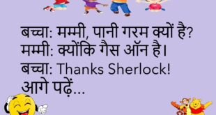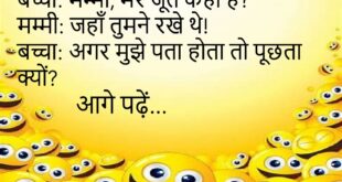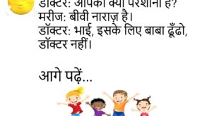 पति: मैं मर गया तो?पत्नी: तुम परेशान मत हो… मैं संभाल लूँगी।😊😊😊😊 ********************************************** टीचर: बताओ, बिजली कहाँ से आती है?बच्चा: जहाँ से चली जाती है।😊😊😊😊 ********************************************** गर्लफ्रेंड: तुम बदल गए हो।बॉयफ्रेंड: तुमने ही तो कहा था चेंज लाया करो।😊😊😊😊 ********************************************** पत्नी: तुम मुझे कहाँ ले जाओगे?पति: Doctor के पास… तुम्हारा गुस्सा चेक करवाने।😊😊😊😊 ********************************************** बच्चा: मम्मी, मेरे जूते कहाँ हैं?मम्मी: …