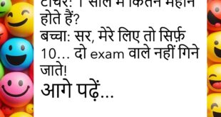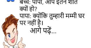टीचर: पापा क्या करते हैं?बच्चा: बहुत गुस्सा!😊😊😊😊 ********************************************** पप्पू: यार, मैं टेंशन में हूँ।दोस्त: क्यों?पप्पू: बीवी ने कहा कि कल घर में surprise मिलेगा… डर लग रहा है।😊😊😊😊 ********************************************** पत्नी: मेरी तारीफ करो!पति: तुम… तुम…पत्नी: धीरे बोलो, घबराओ मत!😊😊😊😊 ********************************************** डॉक्टर: आपकी बीवी की आवाज क्यों बंद है?पति: डॉक्टर साहब, यह तो मेरी जिंदगी का सबसे बड़ा त्योहार है।😊😊😊😊 ********************************************** …