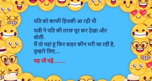 पति: तुम मुझसे नाराज़ हो?पत्नी: नहीं, इतनी छोटी बात पर क्यों नाराज़ होंगी?😊😊😊😊 ********************************************** टीचर: पढ़ाई क्यों नहीं करते?बच्चा: मैडम, आपकी दुआ से पास हो जाऊँगा।टीचर: दुआ से नहीं, पढ़ाई से!बच्चा: मैडम, आपकी दुआ इतनी भी कमजोर है क्या?😊😊😊😊 ********************************************** ऑटोवाला: कहां जाना है?यात्री: जहाँ आपकी किस्मत ले जाए।ऑटोवाला: उतर जाओ… मैं गरीब हूँ, किस्मत खराब है।😊😊😊😊 ********************************************** पत्नी: सुनो, …