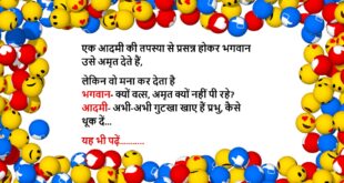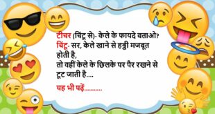 बहू- सासु मां पूजा कर लीजिए, पूजा करने से बड़ी से बड़ी बलाएं टल जाती हैं सास- हां तुम्हारी मम्मी ने बहुत की होगी, उनकी तो टल गई और मेरे पल्ले पड़ गई……😆🤣🤣🤣🤣😝😝😝 ************************************************************************************ चिंटू- मां, कल आपने कहा था कि परियों के पंख होते हैं और वह उड़ सकती हैं मां- हां बेटा, वह उड़ सकती हैं चिंटू- कल …