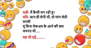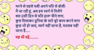 पत्नी (पति से)- मैं आपके जन्मदिन पर नए कपड़े लाई हूं पति- अरे वाह, लाओ दिखाओ पत्नी- रुको मैं अभी पहन के आती हूं पत्नी की बात सुमकर पति ने अपना सिर पकड़ लिया……😆🤣🤣🤣🤣😝😝😝 ************************************************************************************ बॉयफ्रेंड- कहां जा रही हो? गर्लफ्रेंड- आत्महत्या करने बॉयफ्रेंड- तो इतना मेकअप क्यों किया हुआ है? गर्लफ्रेंड- अबे गधे, कल न्यूज पेपर में फोटो भी …