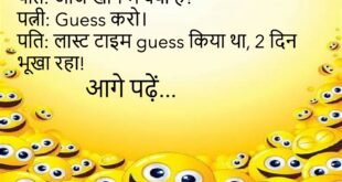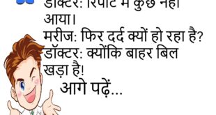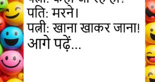 पति: आज खाने में क्या है?पत्नी: गुस्सा और चुप्पी।पति: वाह! आज कुछ नया है!😊😊😊😊 ***************************************** दोस्त: मेरी गर्लफ्रेंड मुझे छोड़ गई।दूसरा: क्यों?दोस्त: क्योंकि मैंने कहा 5 मिनिट में आता हूँ… और 2 घंटे बाद पहुँचा।😊😊😊😊 ***************************************** पत्नी: कहा जा रहे हो?पति: मरने।पत्नी: खाना खाकर जाना!😊😊😊😊 ***************************************** पप्पू: मैं रोज भगवान से 1 करोड़ मांगता हूँ।गप्पू: मिला?पप्पू: नहीं, लगता है भगवान …