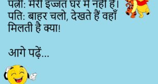 पति: आज खाने में क्या है? पत्नी: मोबाइल उठाओ पति: क्यों? पत्नी: स्विगी-ज़ोमाटो डाउनलोड है ना! 😜 ************************************** गर्ल: तुम मुझे क्यों पसंद करते हो? बॉय: क्योंकि मेरी पसंद ही खराब है! 🤣 ************************************** टीचर: बेटा, जीवन में लक्ष्य ज़रूरी है! स्टूडेंट: हाँ मैम, इसलिए तो क्रश पर निशाना साधा है! 😂 ************************************** डॉक्टर: सुबह जल्दी उठो, दौड़ो, कसरत करो! …