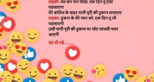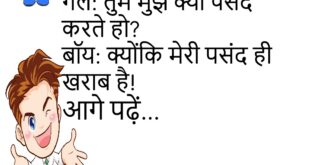 गर्लफ्रेंड- कुछ ऐसी रोमांटिक बातें करो मेरा दिल धड़कने लगे। बॉयफ्रेंड- बाबू तुम मेरी आंखों में ही देखती रहो क्योंकि तुम्हारे पापा आ रहे हैं। अब गर्लफ्रेंड की धड़कन 200 की रफ्तार से भाग रही है।😆🤣🤣🤣🤣😝😝😝 ************************************************************************************ गर्लफ्रेंड- जरा मेरी आंखों में देखो, क्या दिख रहा है, सच-सच बताना बॉयफ्रेंड- मुझे इनमें सिर्फ और सिर्फ प्यार नजर आ रहा है …