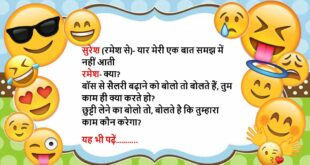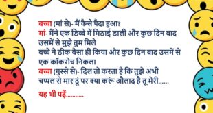 एक ऑटो वाले की शादी हो रही थी जब उसके पास बैठी तो वह बोला, थोड़ा पास होकर बैठो, अभी एक और बैठ सकती है फिर क्या था मण्डप में दे चप्पल, दे चप्पल😆🤣🤣🤣🤣😝😝😝 ************************************************************************************ चिंटू और मिंटू दोनों सगे भाई का क्लास टेस्ट चल रहा था टीचर- तुम दोनों ने अपने पापा का नाम अलग-अलग क्यों लिखा है? चिंटू- …