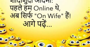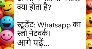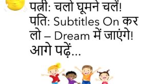 गर्ल: तुम्हें मेरे बारे में क्या पसंद है? बॉय: जब तुम ऑनलाइन नहीं आती! 😂 ************************************** पत्नी: सुनो, एक अच्छी खबर बतानी है! पति: हाँ बोलो! पत्नी: फ्रिज में चॉकलेट रखी है — लेकिन किसी और की! 🤣 ************************************** पापा: बेटा, पढ़ाई क्यों नहीं करते? बेटा: Google मेरी उम्र में पैदा होता तो उसे भी नहीं पता होता! 😆 ************************************** …