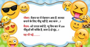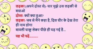 एक लड़का-लड़की बस स्टॉप पर खड़े थे लड़का- अच्छी लिपस्टिक है लड़की- थैंक्स लड़का- बालियां भी अच्छी हैं लड़की- थैंक्स लड़का- नेकलेस भी प्यारा है लड़की- थैंक्स भैया जी लड़का- कमाल है, फिर भी चुड़ैल लग रही हो…..😆🤣🤣🤣🤣😝😝😝 ************************************************************************************ पत्नी (पति से)- कल जो भिखारी आया था, वो बहुत बदतमीज था पति- क्यों क्या हुआ? पत्नी- कल मैंने उसे खाना …