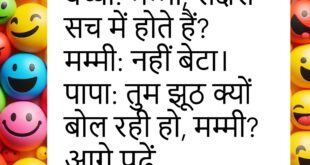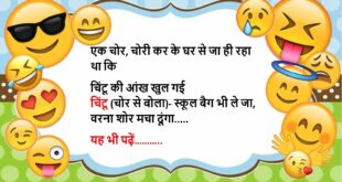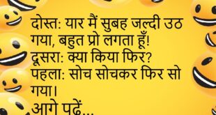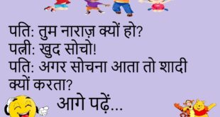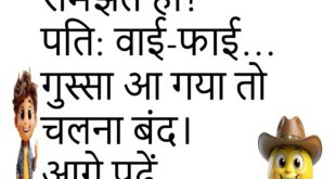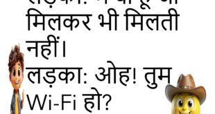 पापा: बेटा फोन छोड़ो, किताब पढ़ो। बेटा: पापा, ये स्मार्टफोन ही आज की किताब है… बस Google एक नया अध्याय है!😊😊😊😊 ******************************************* पति: आज खाने में क्या है? पत्नी: अंदाज़ा लगाओ। पति: अगर अंदाज़ा लगता होता तो मैं Hotel जाता?😊😊😊😊 ******************************************* लड़का: तुम कौन हो? लड़की: मैं वो हूँ जो मिलकर भी मिलती नहीं। लड़का: ओह! तुम Wi-Fi हो?😊😊😊😊 ******************************************* …