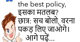 गर्लफ्रेंड: सुनो, I miss you! बॉयफ्रेंड: मैं तो अभी गया ही नहीं। गर्लफ्रेंड: पता है… Practice कर रही हूँ।😊😊😊😊 ******************************************* टीचर: Honesty is the best policy, इसका मतलब? छात्र: सच बोलो, वरना पकड़ लिए जाओगे।😊😊😊😊 ******************************************* पत्नी: मुझे गुस्सा जल्दी आता है। पति: तो Amazon से Easy Return वाला गुस्सा ले आओ।😊😊😊😊 ******************************************* शादी के बाद लड़का: तुम बदल गई! …