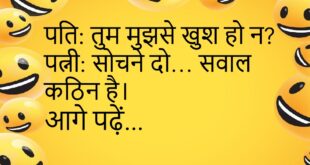 पत्नी: सुनो, मैं मोटी लग रही हूँ क्या? पति: सवाल सरल है… जवाब में जान नहीं जानी चाहिए!😊😊😊😊 *************************************** पप्पू: डॉक्टर साहब, नींद नहीं आती। डॉक्टर: रात में मोबाइल बंद कर दो। पप्पू: नींद कैसे आएगी फिर?😊😊😊😊 *************************************** टीचर: चुप क्यों हो? पप्पू: आवाज़ आएगी तो फिर बोलने को कहोगे!😊😊😊😊 *************************************** लड़की: तुम मुझे क्यों देखते रहते हो? लड़का: आदत …