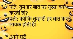 पप्पू: मैंने आज घर साफ किया! माँ: क्या चाहिए? पप्पू: जेपग में तारीफ।😊😊😊😊 *************************************** लड़की: शादी के बाद क्या दोगे? लड़का: नींद, शांति, और पछतावा!😊😊😊😊 *************************************** टीचर: इंडिया का मैप बनाओ। पप्पू ने खाली पेज दिया। टीचर: ये क्या? पप्पू: सर धुंध छाई है।😊😊😊😊 *************************************** पति: तुम हर बात पर गुस्सा क्यों करती हो? पत्नी: क्योंकि तुम्हारी हर बात करने …