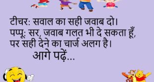 दोस्त: कैसा चल रहा है? पप्पू: वाईफाई की तरह… कभी तेज़, कभी बंद।😊😊😊😊 *************************************** पति: मेरा वजन बढ़ गया है। पत्नी: दिमाग भी बढ़ाना चाहिए था!😊😊😊😊 *************************************** पप्पू: आज मेरी किस्मत बहुत खराब थी। दोस्त: क्यों? पप्पू: भगवान के दर्शन को गया, मंदिर बंद था… और बाबा बाहर WiFi यूज़ कर रहे थे।😊😊😊😊 *************************************** टीचर: तुम हर दिन देर से …