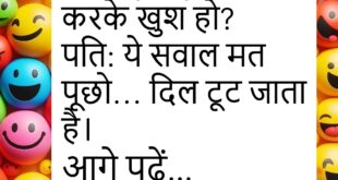 लड़की: क्या करते हो? लड़का: कोशिश।😊😊😊😊 *************************************** पत्नी: आज मुझे शॉपिंग के लिए 2000 दो। पति: 1000 ले लो। पत्नी: क्यों? पति: डिस्काउंट चल रहा है।😊😊😊😊 *************************************** पप्पू: मम्मी, ये बैग कितना भारी है! मम्मी: इसमें तुम्हारा कल का होमवर्क है।😊😊😊😊 *************************************** पति: तुम इतनी खूबसूरत कैसे हो? पत्नी: जन्म से। पति: और दिमाग? पत्नी: वो शादी के बाद खराब …