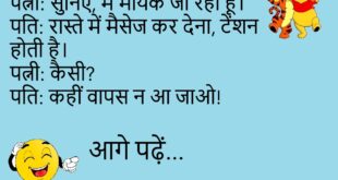 पुलिस – क्यों चिल्ला रहे थे? आदमी – पत्नी ने कहा “बोलो”, तो बोल दिया!😊😊😊😊 *********************************************** पत्नी – तुम मुझे क्या समझते हो? पति – गूगल… सब पता है, पर जवाब कभी सही नहीं होता!😊😊😊😊 *********************************************** डॉक्टर – दवा खाई? मरीज़ – नहीं डॉक्टर, उसकी फोटो देख ली!😊😊😊😊 *********************************************** बच्चा – मम्मी, जब मैं बड़ा हो जाऊंगा तो क्या करूंगा? …